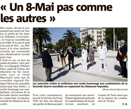 L’ANACR Var était présente, ce 8 mai 2020, pour célébrer l’écrasement du fascisme et du nazisme par les forces Alliées.