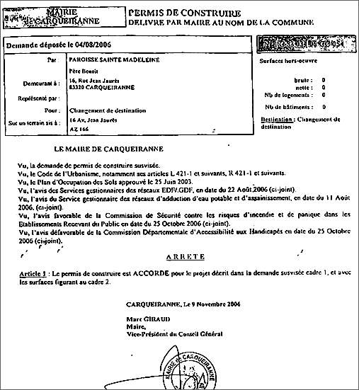 Le permis de construire du 9 novembre 2006