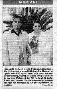 Depuis leur mariage religieux, il y a six ans, Djeïda et Hocine vivaient ensemble. Fin 2006, ils décident de se marier civilement. Ils déposent donc au début de novembre 2006 un dossier de mariage en mairie de Toulon ;