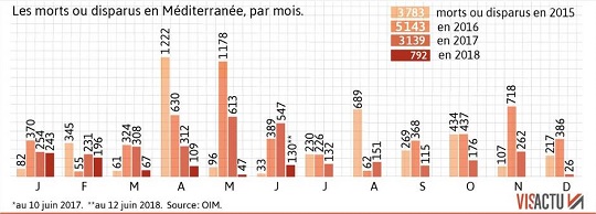 (N.B. : ce décompte macabre a été arrêté au 30/05/2018, depuis d’autres exilés se sont noyés en Méditerranée, faute de secours)