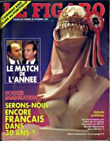 Au début des années 1980, la droite dure se manifestait plutôt par des polémiques contre les immigrés avec la thématique de l’envahissement, comme le montre une couverture du Figaro Magazine en 1985 avec pour question « Serons-nous encore français dans 30 ans ? » et pour illustration une Marianne portant un foulard. Plusieurs événements ont ensuite fait qu’il est apparu plus honorable de dénoncer un certain islam que les immigrés.