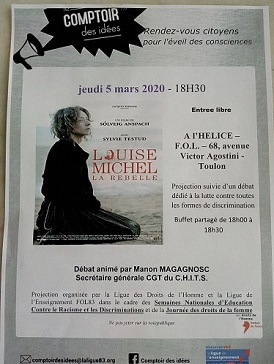 Film "Louise Michel, la rebelle", le 5 mars à la FOL83, suivi d’un débat sur l’hôpital public avec Manon Magagnosc.