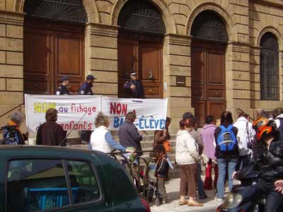 « Malgré l’opposition et la mobilisation de nombreux directeurs, parents et citoyens contre la Base élèves, malgré le blocage de formations de directeurs au logiciel Base élèves, les nombreuses prises de position des élus, l’administration continue à vouloir imposer ce fichage des enfants, décidé sans la moindre consultation, ni avec les parents, ni avec les instituteurs. Les directeurs d’école récalcitrants sont sanctionnés et d’autres, harcelés, menacés, cèdent aux pressions et renseignent Base élèves souvent contre l’avis d’une partie ou de la totalité des parents concernés.
