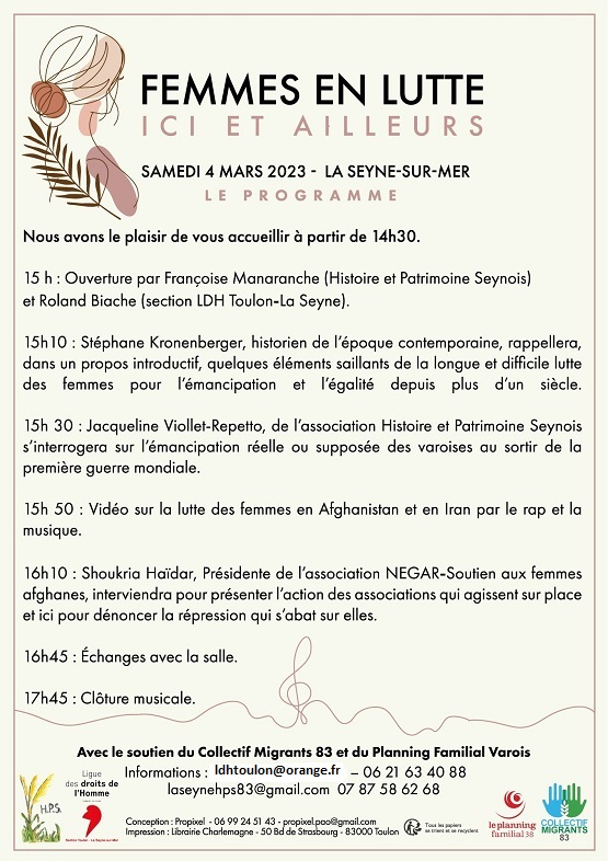 Un après midi pour débattre et rendre hommage aux femmes en lutte (de 15 h à 18 h) (entrée libre)