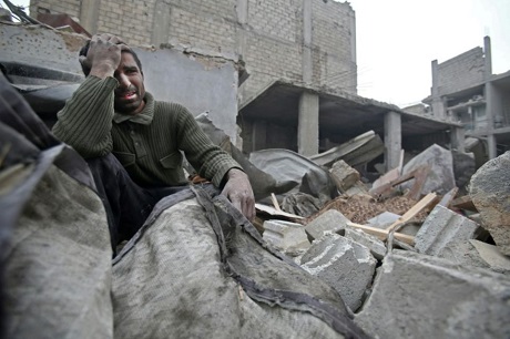 [23] Un homme au milieu des décombres de sa maison dans la ville syrienne d’erbin bombardée, le 5 février 2018 dans la Ghouta orientale Photo ABDULMONAM EASSA. AFP
