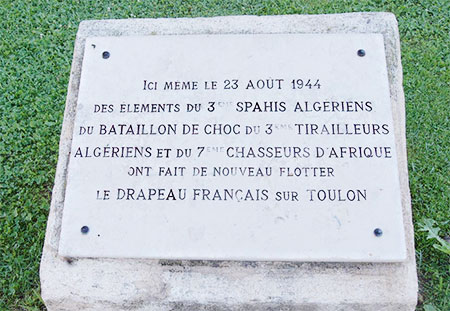 Des indigènes qui ont payé d’un lourd tribut leur participation à la libération de Toulon, le 28 août 1944, comme en témoigne la plaque de la Place de la Liberté :