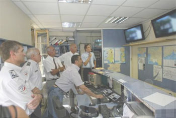 Le préfet en visite au centre de supervision urbaine de Sanary, mis en place fin juillet 2009 au commissariat de Sanary. (Photo : Éric Estrade)