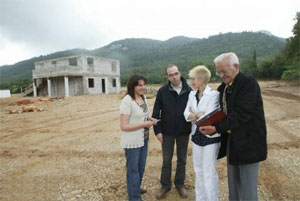 Claude Gilardo et la première adjointe, Sylvie Massimi, sur le site du Candelon en compagnie de Ludovic Hiver et Lydie Grégoraci, directeur et chef de projet à la communauté de communes. (Ph. Rina Uzan - Var Matin)