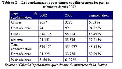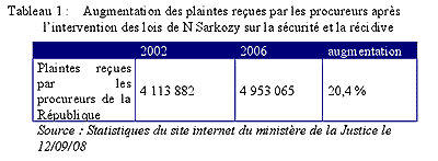 Au moins, pourrait-on imaginer que cette frénésie d’annonces sécuritaires a fait baisser le nombre de crimes et délits. C’est tout le contraire, comme on peut le constater avec ces deux tableaux. Loin d’avoir fait baisser le nombre des plaintes, le nombre des condamnations ou le nombre des récidives légales, les réformes Sarkozy ont affaibli la sécurité des Français.