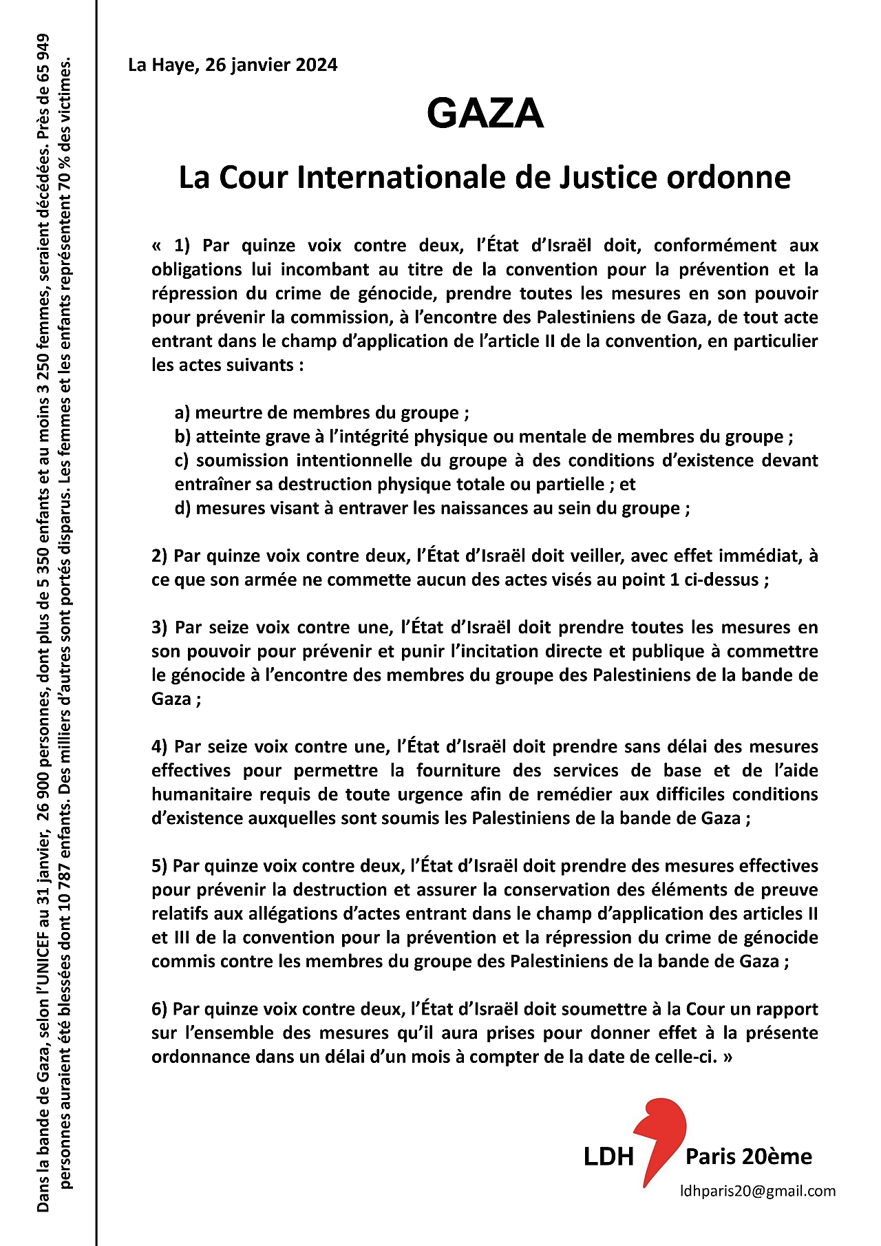 FACE AU RISQUE DE GÉNOCIDE A GAZA, CESSEZ-LE-FEU IMMÉDIAT !