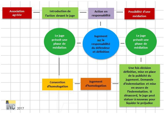 • le schéma de l’action de groupe santé (de l’introduction de l’action devant le juge au jugement en passant par les phases de médiation) ;