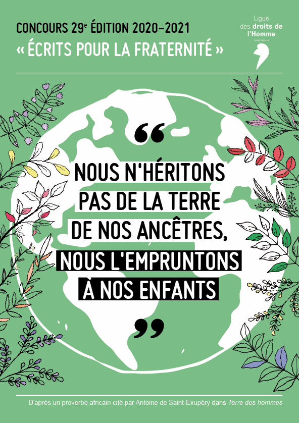C’est sur ce thème de la protection de l’environnement en lien avec les droits de l’Homme que nous vous invitons à participer au prochain concours des « Ecrits pour la fraternité ».