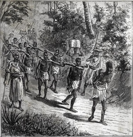 [1] Gravure de 1884 représentant un convoi d’esclaves au Soudan au XIXe siècle. Signature et origine de l’image non communiquées. (AFP - Bianchetti/Leemage)
