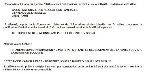 La Commission nationale informatique et libertés (Cnil) a émis, le 21 novembre 1995, un avis favorable à la constitution d’un modèle-type de traitement automatisé que lui avait soumis la Cnaf [1]. La Cnaf dispose donc, depuis lors, d’un cadre général qu’elle actualise au fur et à mesure des versions.