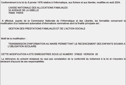Afin de l’adapter à l’évolution incessante de la législation et de la réglementation, il faut de temps en temps procéder à la mise à jour du traitement automatisé d’informations nominatives utilisé par la Caisse Nationale des Allocations Familiales (Cnaf) .