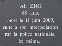 [AFP – 31 janvier 2012] – La ville d’Argenteuil (Val-d’Oise) a annoncé mardi 31 janvier 2012 qu’elle retirait la plaque à la mémoire d’Ali Ziri, retraité algérien mort en 2009 après un contrôle de police. La mairie a cédé à l’injonction du préfet, après les pressions de syndicats de police qui la jugeaient "diffamatoire". "C’est au regard des tensions qui se font jour que M. Philippe Doucet, maire d’Argenteuil, garant de la tranquillité publique et prenant en compte les relations avec les services de l’État [...] concède la dépose de ladite plaque", indique la mairie (PS), dans un communiqué. "La municipalité rappelle d’une part que le collectif est l’auteur du texte mentionné sur la plaque dont il est propriétaire, d’autre part que l’État ne s’est pas opposé à la tenue de cette manifestation dont il avait été préalablement tenu informé", précise le communiqué.
