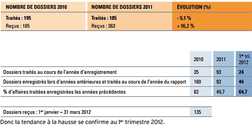 Saisines en cours : 2010-178 ; 2011-246 ; 2011-264 ; 2012-41