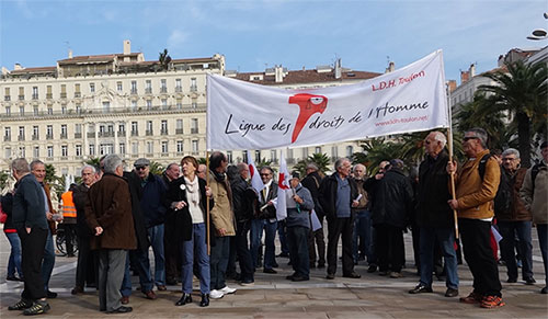 Plus d’une centaine de Toulonnais, se sont retrouvés, en fin de matinée sur la place de la Liberté, pour dire NON. Vous trouverez ci-dessous un texte écrit par la présidente de la section de Toulon de la LDH, suivi d’un article qui expose brièvement quelques uns des méfaits de l’état d’urgence.