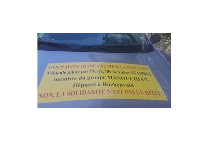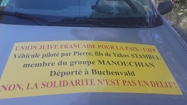 Le 16 août, parmi les solidaires présents, 6 membres de l’UJFP (les âges allant de 60 à 85 ans) étaient là avec 4 calicots affichant publiquement les identités et rappelant le passé : enfants cachés, parent de disparu ou de résistant déporté". [2]