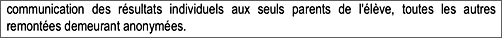 - En revanche, les résultats de chaque élève seront communiqués à ses parents par le maître de la classe ou le directeur de l’école. Les parents seront les seuls, avec les maîtres, à connaître les résultats individuels de leur enfant.
