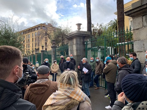 (Photo : © Dominique Moret / FTV) - La ligue des droits de l’homme et l’ora di u ritornu devant la préfecture d’Ajaccio ce 30 décembre 2020.