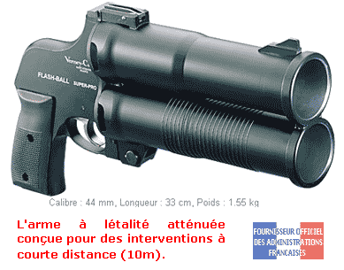 « Le Flash-Ball est une arme – expérimentée par les forces de police depuis 1995 – dite de pacification. Depuis quelques années, le Flash-Ball a déjà fait plusieurs victimes, jeunes pour la plupart. A chaque fois, cibles de tirs tendus, à hauteur du visage. Aux Mureaux, en juillet 2005, un adolescent de 14 ans perd un oeil. Il en a été de même en octobre 2006 à Clichy-sous-Bois, pour un jeune de 16 ans. Et de même encore en novembre 2007, à Nantes, lors d’une manifestation étudiante, pour un jeune de 17 ans - l’oeil crevé au Flash-Ball, là aussi. Cette année, des drames de même nature ont frappé un étudiant de 25 ans à Toulouse, en mars, et un jeune à Neuilly-sur-Marne, en mai. Le Flash-Ball ne tue pas : il mutile - à vie. Bilan : six vies brisées, et qui n’auraient jamais dû l’être. » [1]
