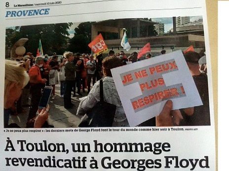 (près de 150 personnes rassemblées pour rendre hommage à George Floyd, le 9 juin, à 18 h à Toulon)