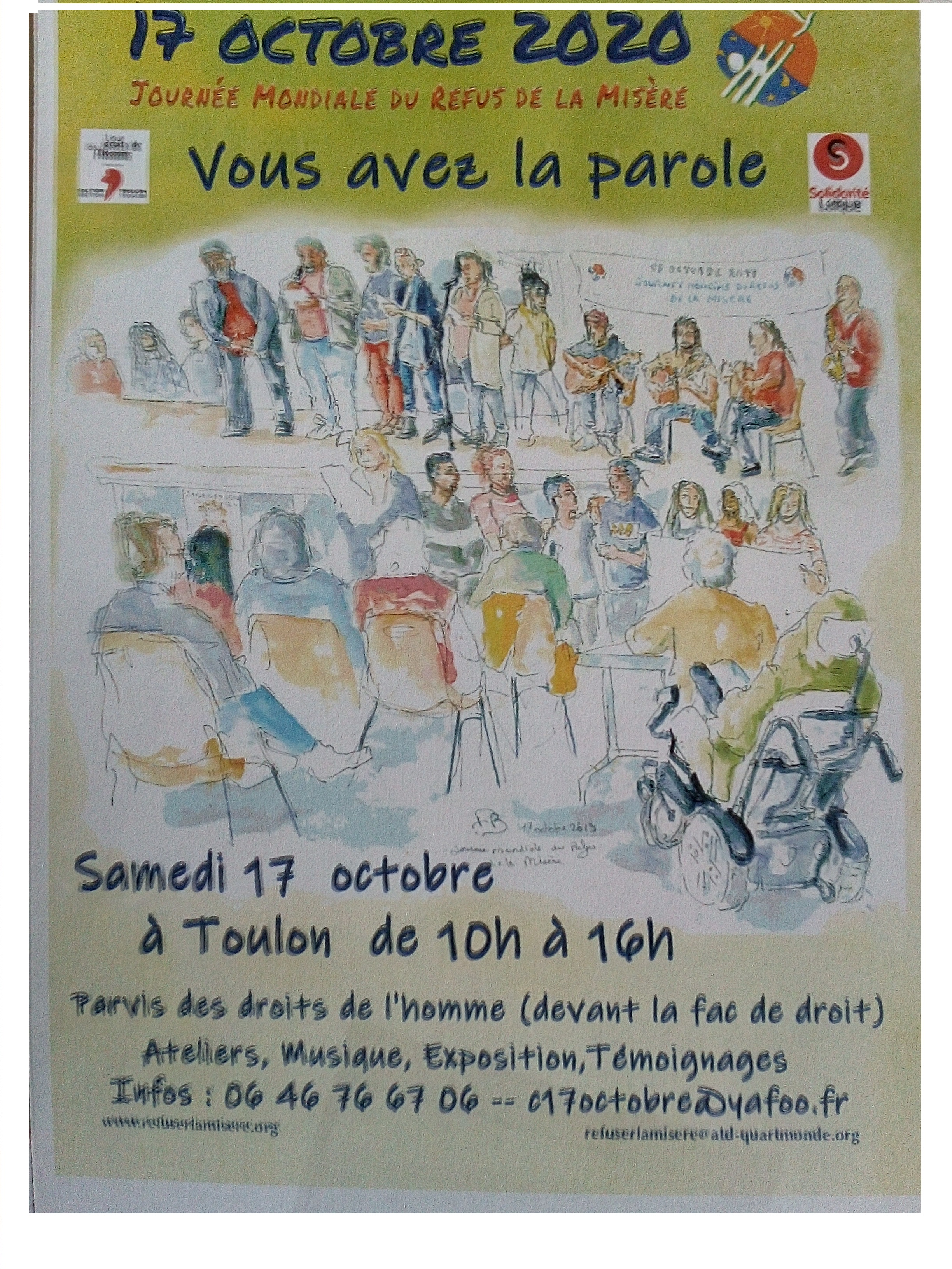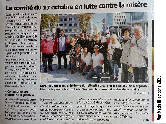 C’est au titre du PEPS 2020 que, cette année, la Journée du Refus de la Misère se tiendra sur le parvis des Droits de l’Homme - Toulon, à partir de 10 h.