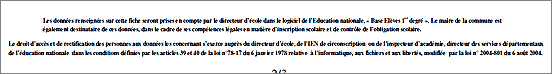 Les données renseignées sur cette fiche seront prises en compte par le directeur d’école dans le logiciel de l’Education nationale, « Base Elèves 1er degré ». Le maire de la commune est
