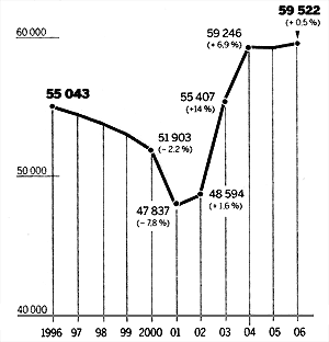 Par la suite, la population se stabilise, mais à des niveaux inégalés depuis trente ans. En 2006, le niveau annuel des entrées en prison a retrouvé celui de 1996. Ce sont désormais plus de 85 000 personnes qui entrent et sortent de prison chaque année.