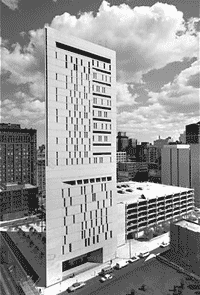 Le Metropolitan Correctional Center (Van Buren Street, South Loop) de Chicago, conçu par l’architecte Harry Weese, est en service depuis 1976. Cette prison fédérale est un gratte-ciel "triangulaire" de 27 étages dont le dernier niveau sert de terrain d’activités pour les détenus.