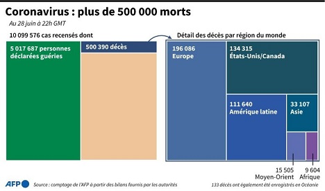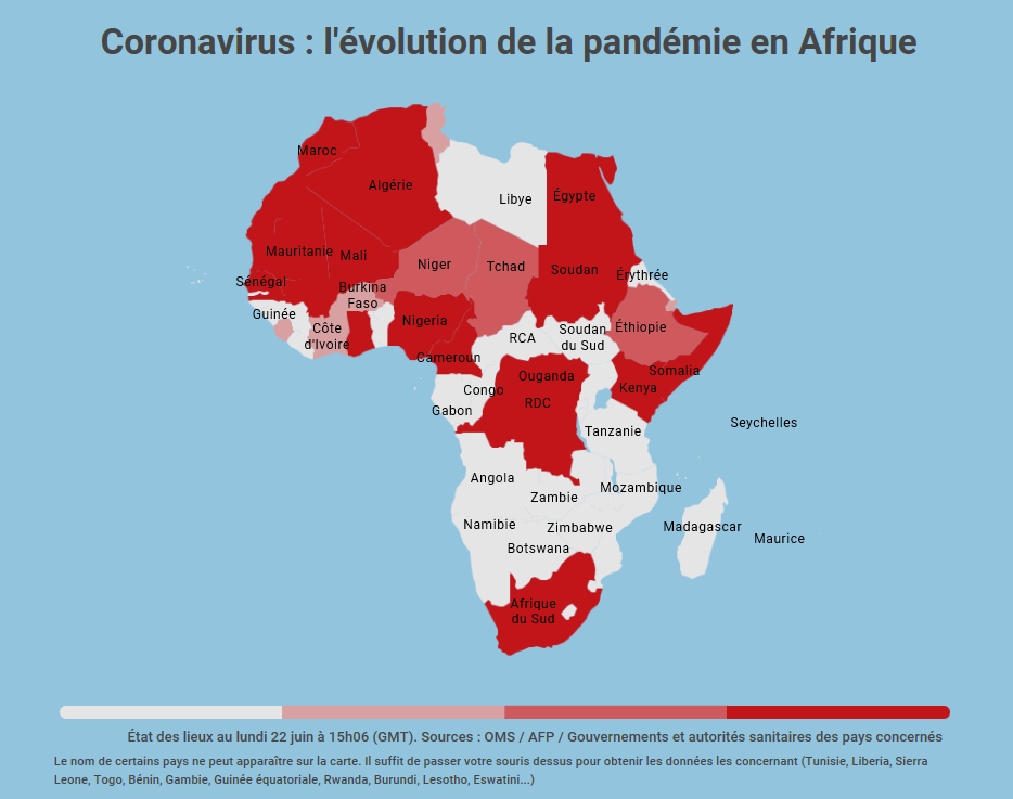 Si l’Afrique semble moins touchée par la pandémie, "les prédictions sont très inquiétantes. Ainsi, la Commission des Nations unies pour l’Afrique (CEA) a estimé le 17 avril 2020 que la pandémie pourrait tuer jusqu’à 300 000 personnes sur le continent et pousser 29 millions d’Africains dans l’extrême pauvreté. L’Organisation mondiale de la santé (OMS) a, quant à elle, averti que l’Afrique pourrait compter jusqu’à 10 millions de cas de Covid-19 d’ici à six mois.
