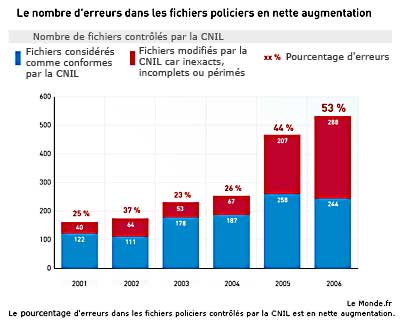 Plus de la moitié des fichiers policiers contrôlés en 2006 par la CNIL étaient erronés
