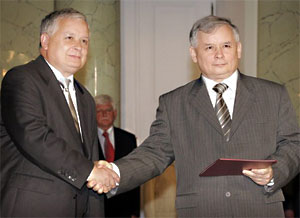 [2] Le gouvernement de Jaroslaw Kaczynski comporte deux représentants de la LPR, dont le président, Roman Giertych, ultracatholique fortement homophobe nommé ministre de l’éducation, qui a salué récemment la mémoire du général Franco. [Le Monde du 4 août 2006]