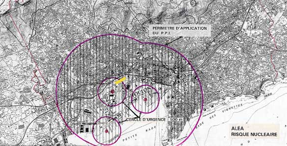 Bien entendu, ces risques sont connus depuis des années. Dans une plaquette [1] co-éditée en 2000 par la Préfecture du Var et la Marine nationale, le Préfet du Var et le Préfet Maritime écrivaient sans fard "Madame, Monsieur, vous vivez dans le voisinage du port militaire de Toulon dans lequel sont stationnés et entretenus des bâtiments à propulsion nucléaire. Le ministère de la défense, comme tout exploitant d’installation nucléaire, respecte les dispositions techniques et réglementaires destinées à prévenir en toutes circonstances les risques pour la population et l’environnement. Mais, aussi peu probable que soit un accident, les services de l’Etat ont défini un PPI (Plan Particulier d’Intervention) destiné à organiser les secours et les mesures de protection de la population."