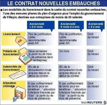 Réponse au NON au référendum sur la Constitution européenne, qui fut pourtant en grande partie un rejet du libéralisme économique, le Contrat Nouvelle Embauche est la mesure phare du plan d’urgence pour l’emploi du Gouvernement Villepin, en fait une importante remise en cause des protections du droit du travail, mise en place sans concertation paritaire ou législative [1].