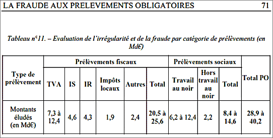 Selon les estimations du Conseil des prélèvements obligatoires, le montant de la fraude fiscale et sociale tourne, en France, entre 28 et 40 milliards d’euros. [...]