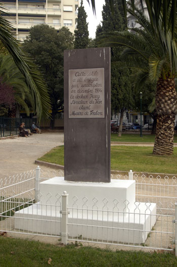 En décembre 1994 - six mois avant les élections municipales de 1995 [2] - le Docteur François Trucy, Maire de Toulon et Sénateur du Var, a inauguré, dans le petit jardin public du Champ de Mars, un monument financé par souscription, en souvenir de ces évènements.