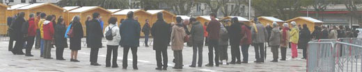 Une cinquantaine de personnes [2], debout et silencieuses, sous un ciel plombé, place de la Liberté, à l’heure du déjeuner, au milieu des chalets de Noël encore fermés, les militants répondaient à l’appel de la Ligue des droits de l’Homme et du Réseau éducation sans frontières du Var. Une heure entière de silence. Un recueillement, plus fort que les mots, tendu vers la situation des sans-papiers.Il s’agit, comme chaque mois à présent, de dénoncer les traitements « inhumains », imposés aux hommes, femmes et enfants, dont la seule faute a été de n’être pas en règle administrativement.
