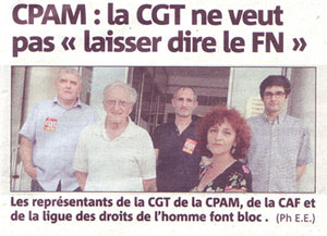 Du côté du FN, un certain candidat suppléant y est encore allé de ce type de propos, faisant imédiatement réagir employés et syndicalistes CGT des organismes sociaux. Trop c’est trop, surtout quand le candidat en question se présente comme un salarié à la CPAM. « Mais c’est ce que dit le FN dans son ensemble qui nous scandalise », explique Marie-Thérèse Gory (CGT).
