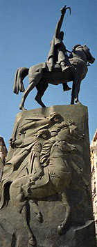La promotion de l’image de l’émir apparaît bien dans les statues successives qui sont érigées en son honneur au cœur d’Alger : la première, de style très classique, mais jugée trop petite, et rapidement ridiculisée par les jeunes Algérois, qui, toujours narquois, la baptisent « cadeau Bonux » ; la seconde, grandiose et guerrière, représentant l’émir sur son cheval, le bras levé brandissant un sabre.