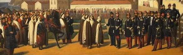 Pendant ce temps, on s’interroge à Paris sur l’avenir que l’on doit réserver à cette nouvelle conquête. De Guizot à Tocqueville, on réfléchit et l’on débat. Deux thèses s’affrontent, celle qui vise à faire gouverner les Arabes par les Arabes et celle qui a pour objectif la « francisation » des Algériens. Une solution mixte est temporairement adoptée avec création d’un protectorat tampon à l’intérieur de l’Algérie et francisation des villes. Ce n’est qu’en 1848, après le renversement de Louis-Philippe et l’avènement de la seconde République que l’on déclare l’Algérie « territoire français » et que les trois anciennes provinces turques sont transformées en trois département français. Mais il faudra attendre 1865 pour qu’un Algérien soit reconnu « sujet français ».