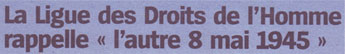 Alors que la France a du mal à assumer cette page de son histoire, la section de Toulon de la Ligue des droits de l’Homme tient à rappeler les deux aspects de la journée du 8 mai 1945. Elle s’associera notamment à l’hommage que le peuple algérien rendra aux victimes de ces massacres.