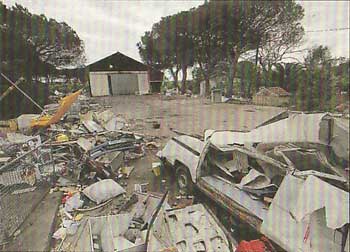 Après le départ de la communauté, les caravanes ont été détruites et des tranchées creusées autour du site. (Ph. Gabrielle Prompt)