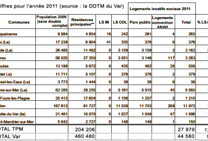Le tableau est clair : il montre le déficit en logements sociaux locatifs à Toulon et dans la communauté d’agglomération Toulon-Provence-Méditerranée.