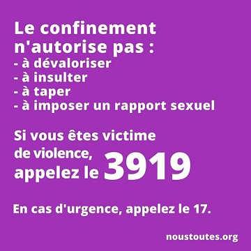 Que le risque sanitaire –en raison des mesures de précaution qu’il impose- ne génère pas d’autres atteintes à la santé et à l’intégrité physique des personnes, celles que pourrait entraîner la cohabitation dans un contexte de violences conjugales ou intrafamiliales : tel est l’objectif, tel est le mot d’ordre ! Pour sa part, le ministère de la justice se mobilise pleinement à cette fin.