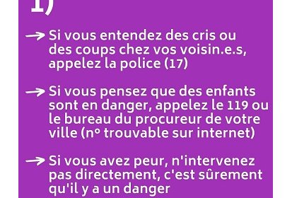 Si vous êtes victimes de violences intrafamiliales et que vous résidez à Marseille, appelez SOS femmes 13 au 04.91.24.61.50. Pour les appels urgents, contactez police ou gendarmerie au 17, 112 ou 119. Pour une écoute gratuite, composez le 3919 (...)