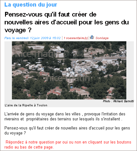 Que penser du « sondage » suivant, datant du 12 juin 2009 [4], qui ne cite pas la loi Besson et ne mentionne pas le fait que le Var ne la respecte pas ?