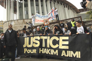 Manifestation pour Hakim Ajimi devant le palais de justice de Grasse en septembre 2010 Manifestation pour Hakim Ajimi devant le palais de justice de Grasse en septembre 2010. Xavier Giraud