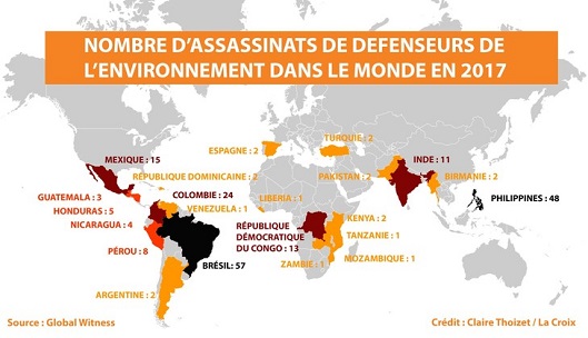 (Lire l’article de Claire THOIZET sur https://www.la-croix.com/Sciences-et-ethique/Environnement/INFOGRAPHIE-2017-annee-noire-defenseurs-lenvironnement-2018-07-24-1200957352?utm)